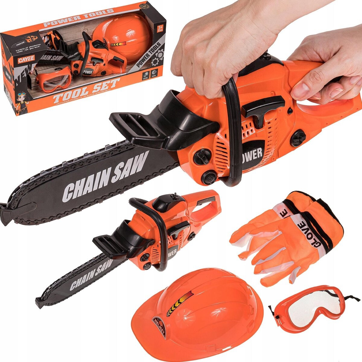 100% безопасностьИгрушечная бензопила на 100% безопасна для детей . Вращающаяся цепь детской бензопилы изготовлена из резины – нет риска, что ребенок поранится о какой-либо элемент, и играть с ней можно в полной безопасности. Детская бензопила имеет очень удобную ручку . благодаря чему даже «многочасовая работа на лесопилке» не будет утомительной. Размер детской бензопилы и небольшой вес позволяют ей идеально помещаться в маленькой детской руке. Пример идентичной мотопилы красного цвета в сезон :) Развивает воображение