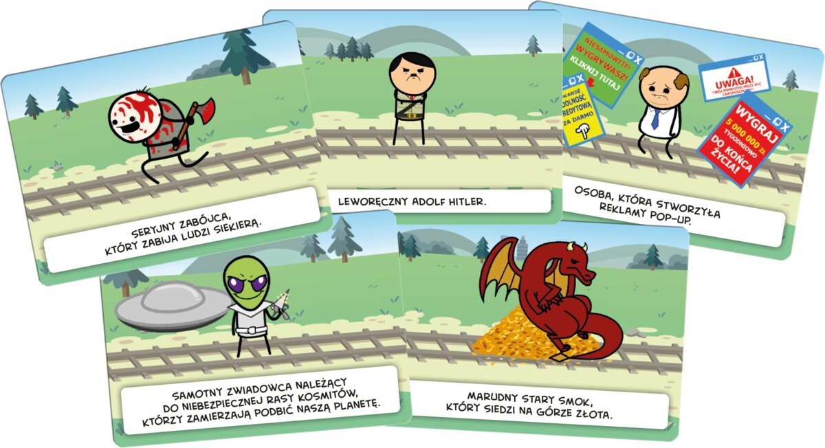 Дилемма каравана — это карточная игра для вечеринок, предназначенная для взрослых. Он сочетает в себе философские соображения с кровопролитием и заставляет участников принимать трудные моральные решения.Философские соображения и кровавая бойня в одном! Кароль Колеярз не ожидал никаких проблем – рабочий день обещал быть мирным. По крайней мере, до тех пор, пока поезд, которым он управлял, немного вышел из-под контроля. Несущаяся вперед смертоносная машина приближается к развилке, нашему герою предстоит решить, в какую сторону повернуть, а тем временем на каждой трассе стоят ничего не подозревающие люди. . . О чем речь?