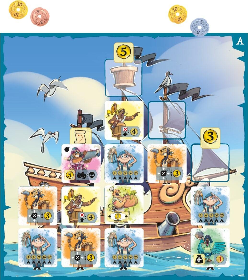 Игра окончена когда кто-то заполняет 4 столбца на доске. После рассмотрения эффектов в конце игры участники подсчитывают собранные монеты. Побеждает самый богатый капитан!Почему вам понравится эта игра?