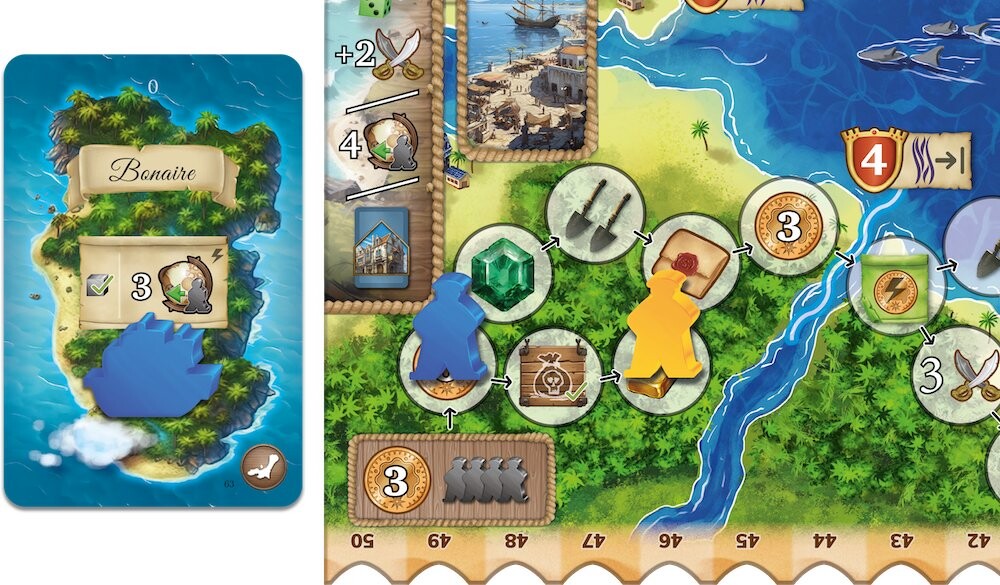 - Во время игры мы играем за пиратов, которые должны завершить последние 3 экспедиции, поэтому одна игра длится 3 раунда. Каждый из них заканчивается, когда один из игроков достигает Маракайбо.