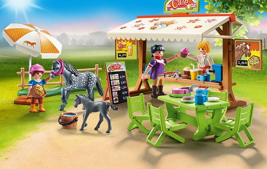 Уроки верховой езды довольно утомительны! Отдохнем в уютном кафе. Здесь люди и животные могут отдохнуть после интенсивных тренировок. За стойкой вас манят вкуснейшие пирожные, сладкие тарталетки и восхитительные маффины, идеально подходящие к чашечке ароматного кофе или чая. Конечно, пони нужно не только наблюдать, они также могут насладиться водой и вкусной закуской. Отдых в седле – это большое удовольствие!