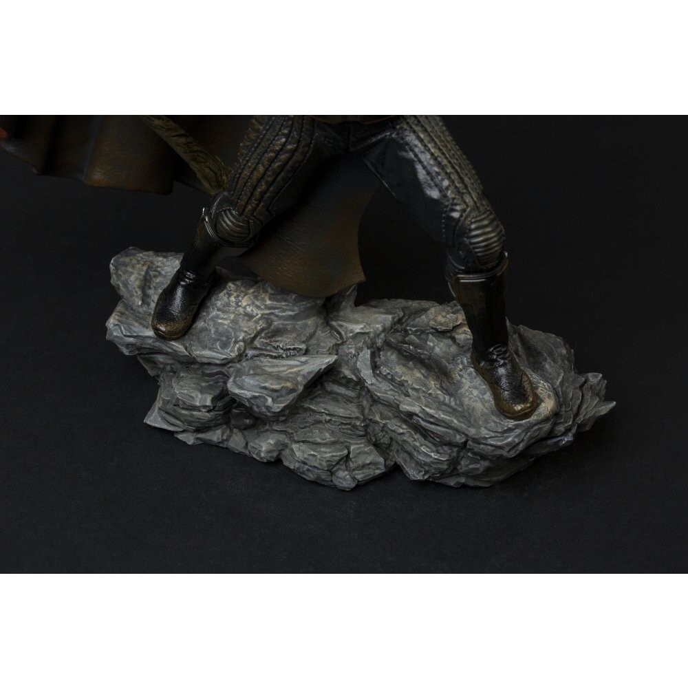 Он выполнен в масштабе 1:10и имеет размеры примерно 23 смпо высоте (приблизительное общее количество) размеры 23 х 25 х 15 см). Изготовлен из материала Polystone, а затем расписан вручную. Сама фигурка установлена на подставке, вся вещь статична.