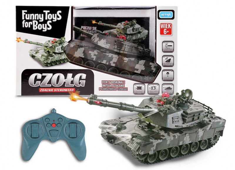 Танк с дистанционным управлением на гусеничном шасси. Он имитирует вождение настоящей боевой машины! Немного потренировавшись, вы станете настоящим виртуозом вождения своего танка. Машина издает реалистичные звуки, светится и имитирует отдачу при выстреле.