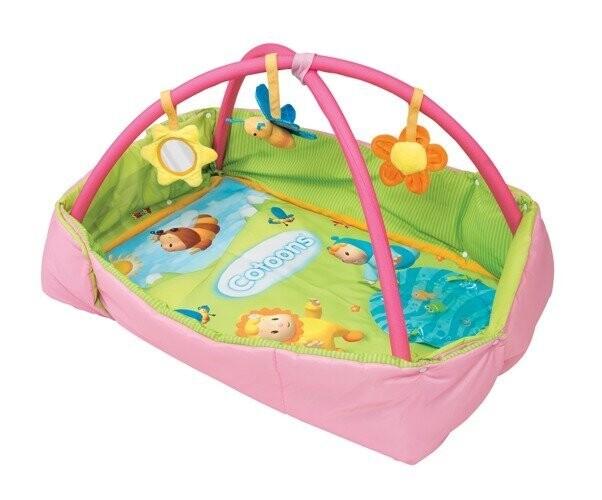 Содержит 3 аксессуара, развивающих моторику и любознательность (зеркало, шелестящий цветок и бабочка). Дополнительной достопримечательностью является съемный карман с водой.