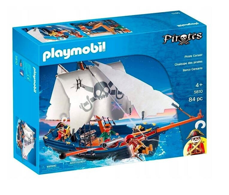 Игрушка Playmobil Pirates 5810 Corsair Ship. Отправляйтесь в открытые воды и начните новую экспедицию по ранее неизведанным морям. Путешествуйте по самым опасным океанам на плавучем корсарском корабле и защищайте свои сокровища с помощью стреляющей пушки. Чтобы обеспечить безопасность собранных вами драгоценных камней, вы можете поместить их в потайной отсек под палубой корабля. В комплект поставки входят: плавучий корабль с пиратскими парусами; 3 фигурки пиратов; рабочая пушка с патроном; другие игровые аксессуары.
