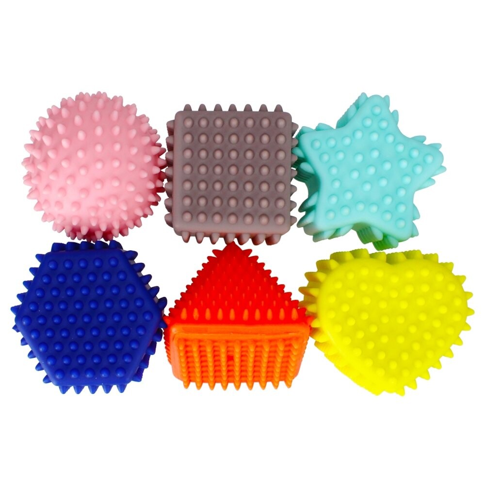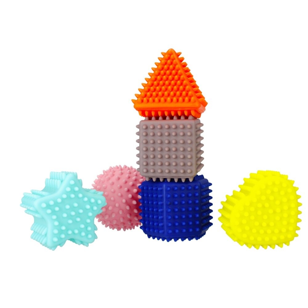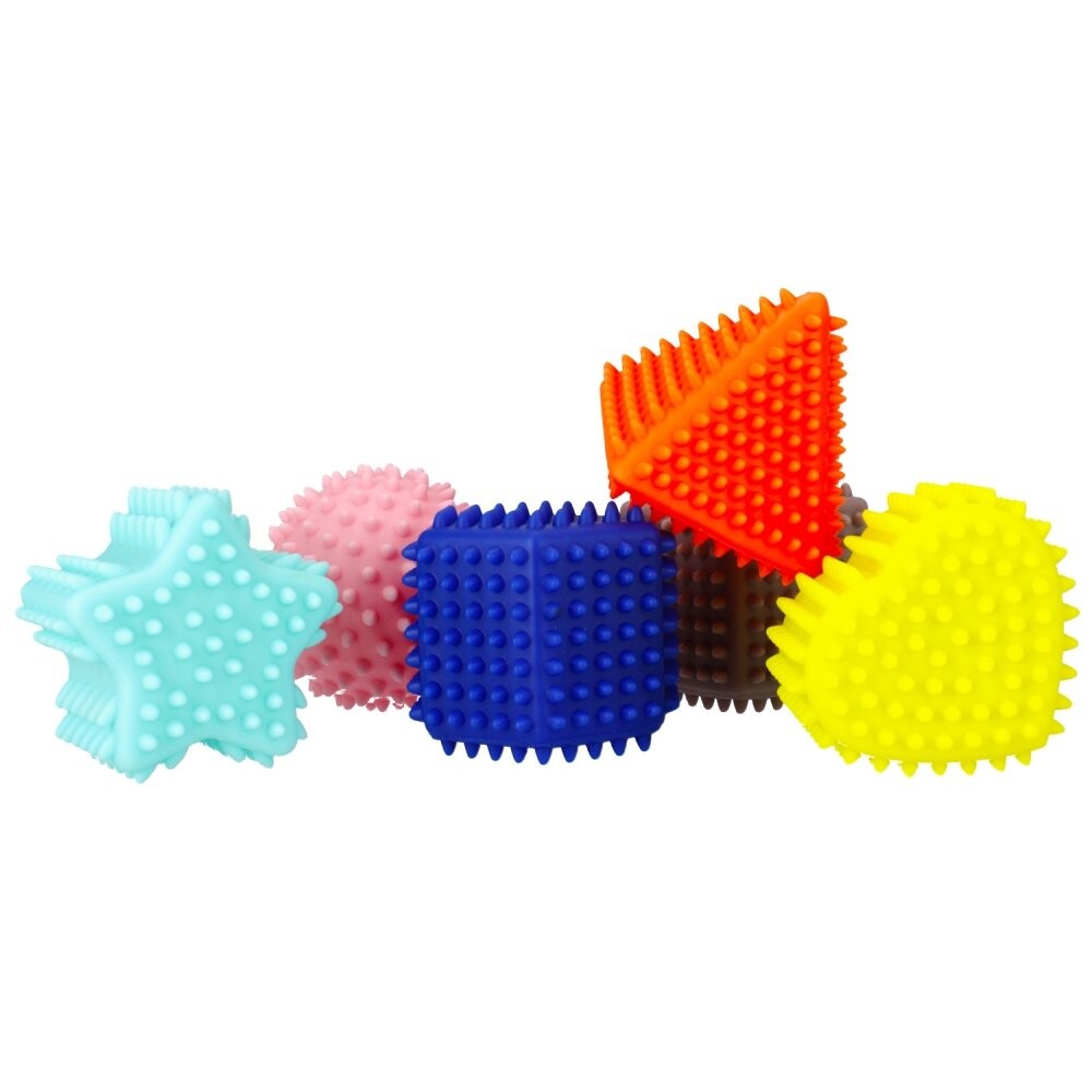 Набор сенсорных фигурок – это больше, чем просто развивающая игрушка. Различные формы шести фигур, в том числе шара, куба, треугольника, шестиугольника, звезды и сердца, предоставят ребенку разнообразие и множество сенсорных впечатлений, способствующих развитию осязания и ручных навыков. Разнообразные формы, а также многочисленные и разноплановые выступы стимулируют сенсорные рецепторы, и в то же время расслабляют, расслабляют и тренируют маленькие ручки. Разнообразные текстуры и цвета стимулируют зрение. Сенсорные игрушки гарантируют всестороннее развитие ребенка, который посредством игры улучшает координацию между осознанным хватанием и зрением, а также совершенствует мануальные навыки. Размеры/вес/батарейки: размеры изделия длина х высота см: квадрат-7х7, круг-8 см, шестиугольник-8х7 см, треугольник-8х9, сердце-8х7, звезда-8х8. размеры упаковки длина х высота х глубина см: 35х25х9, вес изделия без упаковки кг: 0,50 кг, вес изделия в упаковке кг: 0,76 кг, не требуются батарейки. Набор предназначен для детей в возрасте: 6 месяцев. Упаковано в коробку с окошком.