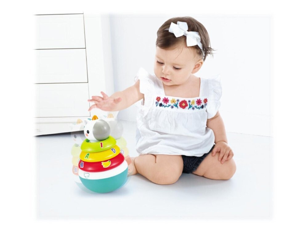 закругленная платформа игрушки делает что с ним можно играть, как с американскими горками. При раскачивании издает приятные дребезжащие звуки.
