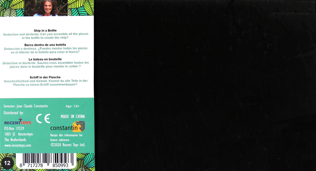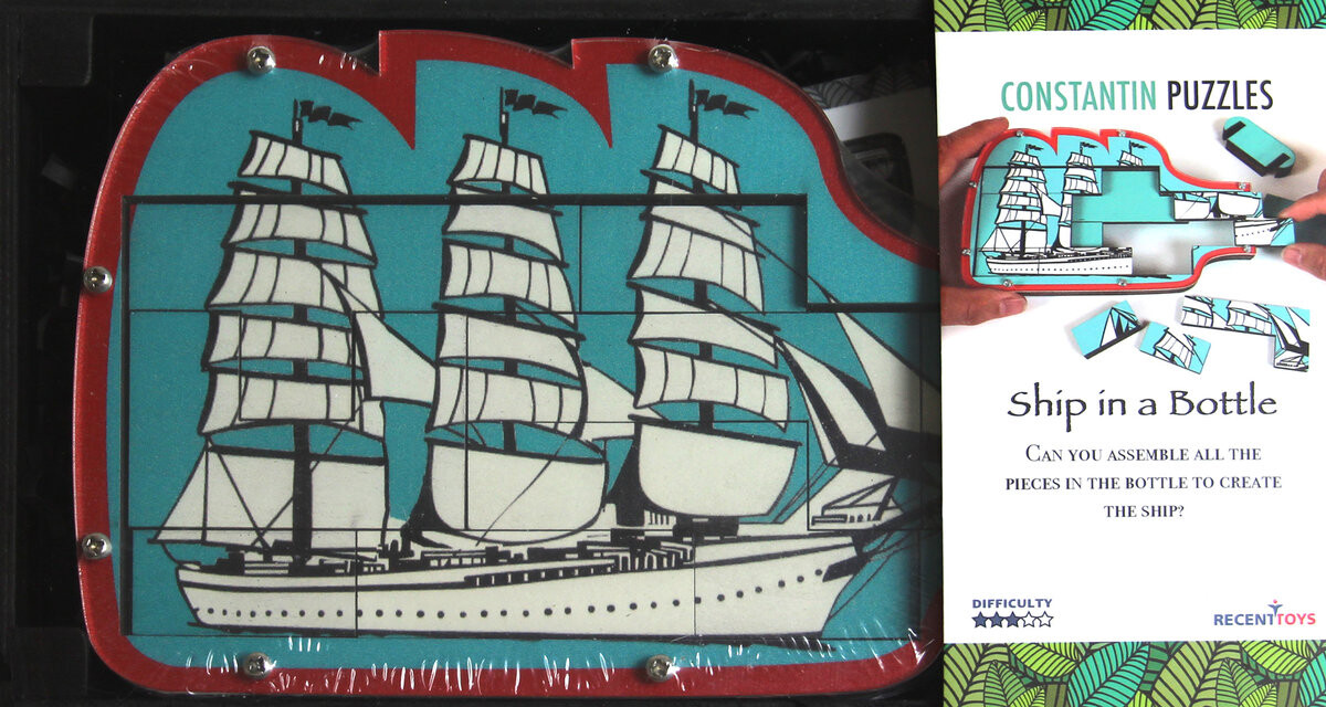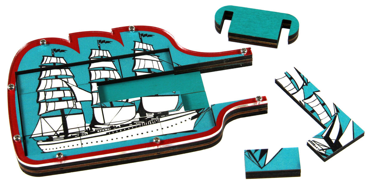 Сможете ли вы расположить все элементы в бутылке так, чтобы появился корабль? Для начала аккуратно вытащите кусочки из бутылки. Затем используйте свои способности дедукции и ловкость, чтобы построить картину корабля внутри бутылки. Окажется ли загадка приятным круизом по спокойному океану или вас укачает? Жан-Клод Константин, несомненно, один из самых занятых дизайнеров головоломок за последние тридцать лет. Уникальные и разнообразные идеи, возникающие в его голове, превращаются в уникальные и визуально ошеломляющие проекты. Головоломки Жан-Клода считаются очень сложными. Для их решения понадобится большая активность серого вещества. соответствующая концентрация и немного воображения. Recent Toys — производитель головоломок из Нидерландов. Как они говорят о себе: «Пазлы создают для каждого». Если вам нравится математика, логика, расстановка закономерностей или вы просто терпеливы и настойчивы, вы обязательно найдете что-то для себя!