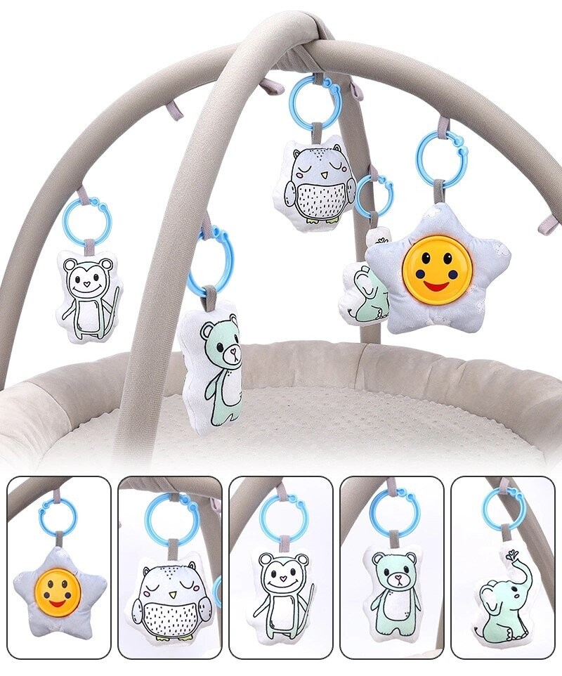Сова со встроенной погремушкой Звезда с функцией мелодии Мишка Тедди со встроенной погремушкой Обезьянка со встроенной погремушкой Слон со встроенной погремушкой Мягкая специализированная подушка - идеально подходит для времяпрепровождения на животе поддержка развития мышц шеи и спины. Преимущества продукта:Развитие навыков: Коврик способствует развитию моторной и сенсорной координации с помощью интерактивных игрушек.