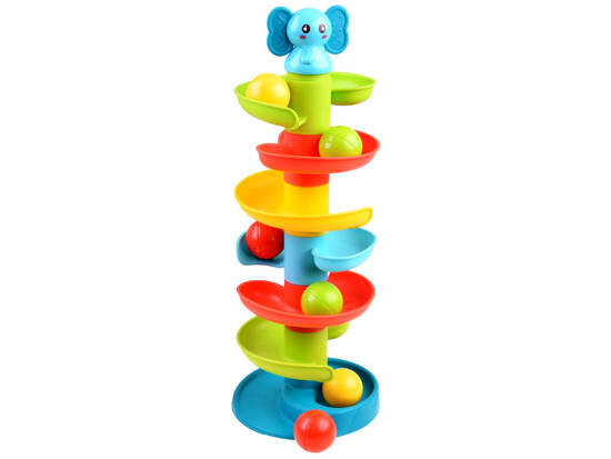 Красочная витая горка, дорожка для шариков, высокая витая башня, на вершине которой торжествует очаровательный слоник с резиновыми ушками, который малыш может использовать как прорезыватель. Трек для шариков — предложение для детей, которым нравится действие, когда что-то происходит и что-то крутится. Красочная приключенческая трасса состоит из шести красочных платформ, подставки и накладки в виде слона, что доставит массу положительных эмоций каждому малышу. Играя, дети выпускают шарики из закрученной пирамидки и наблюдают, как они катятся вниз, радостно гремя, что доставит им массу радости. Игрушка полностью изготовлена ​​из качественного пластика привлекательной расцветки. На определенном этапе развития ребенок любит наблюдать за падающими, движущимися элементами и со временем сам приводит их в движение. Игрушка стимулирует развитие зрения и восприимчивости. координация движений ребенка. Яркие цвета и интересная форма трассы подарят много часов невероятного удовольствия. Игрушка упакована в очень красивую упаковку, идеальна для подарка. Набор - 6 разноцветных шариков - 6 витых платформ - 1 основа - 1 накладка Размеры пирамиды 47x17 см, диаметр шарика. Слон 4 см. 7х9х5 см. Комплектация: 1 шт.