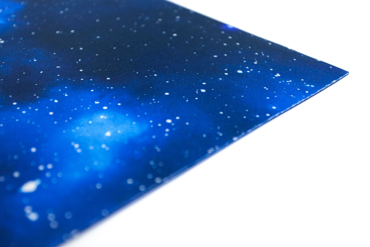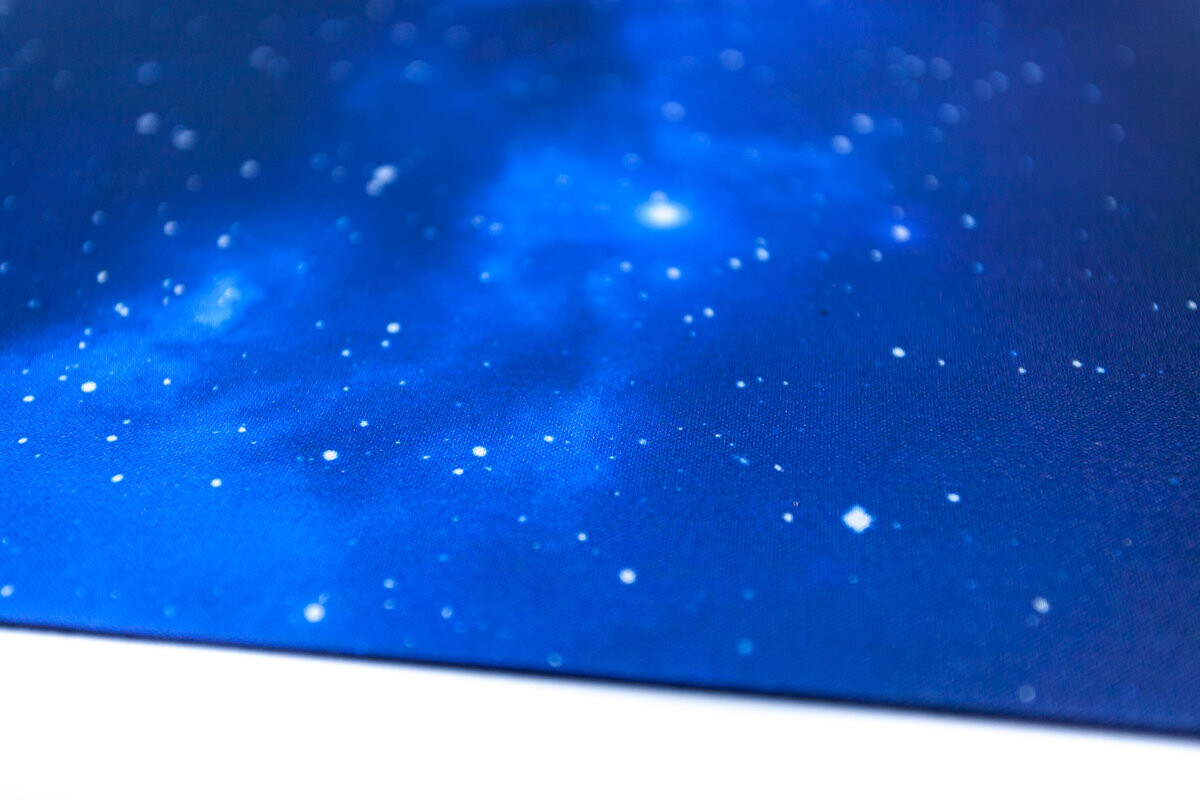 На коврике изображена голубая водородная туманность.