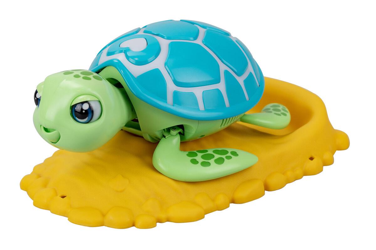 Покажите своей маме-черепахе любовь и заботу, и она отложит яйца вместе с черепахами! Игрушка оснащена ракушкой, которая светится разными цветами, сигнализируя о настроении животного. Убедитесь, что черепаха-мать сыта, отдохнула и счастлива, и она родит игрушечное потомство. Помимо большой черепахи в набор также входят яйца, еда, сердце и гнездо. Игрушка работает от батареек. Изделие предназначено для детей от 5 лет. Характеристики продукта: - в комплект входят: черепаха, гнездо, еда, сердце, яйца с маленькими черепахами; - откладывает яйца; - издает звук; - реагирует более чем 10 способами; - батарейки: 3 шт. включено);- возраст: 5+.