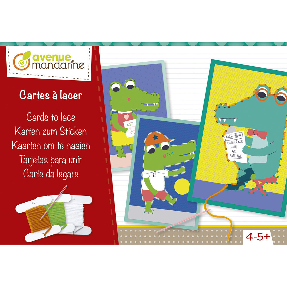 Состав: 4 карточки 10х15 см с иллюстрациями и перфорацией для шитья (бумага 250 г/м^2) - 4 карточки 11х16 см на двустороннем скотче, для письма (бумага 200 г/м^2) - 4 отрезка пряжи (3 метра каждый) - 4 конверта - 1 пластиковая игла - Инструкция.