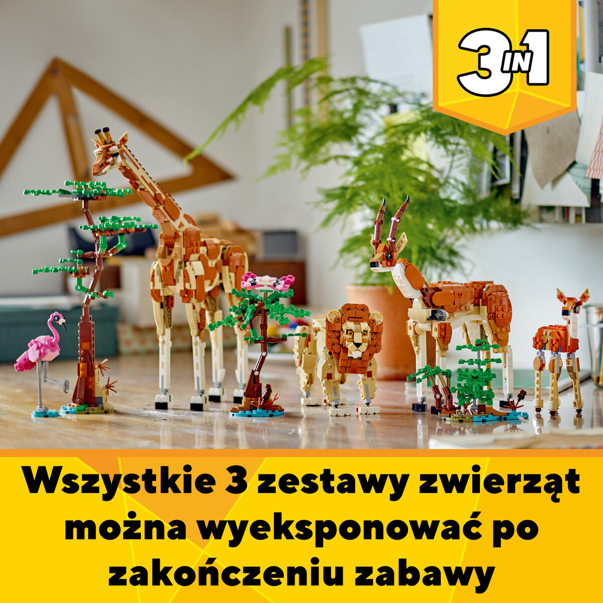 Дети отправятся на сафари, собрав жирафа, семейство газелей и льва из набора LEGO Creator Wild Safari Animals 3-в-1.Неограниченные возможности игры