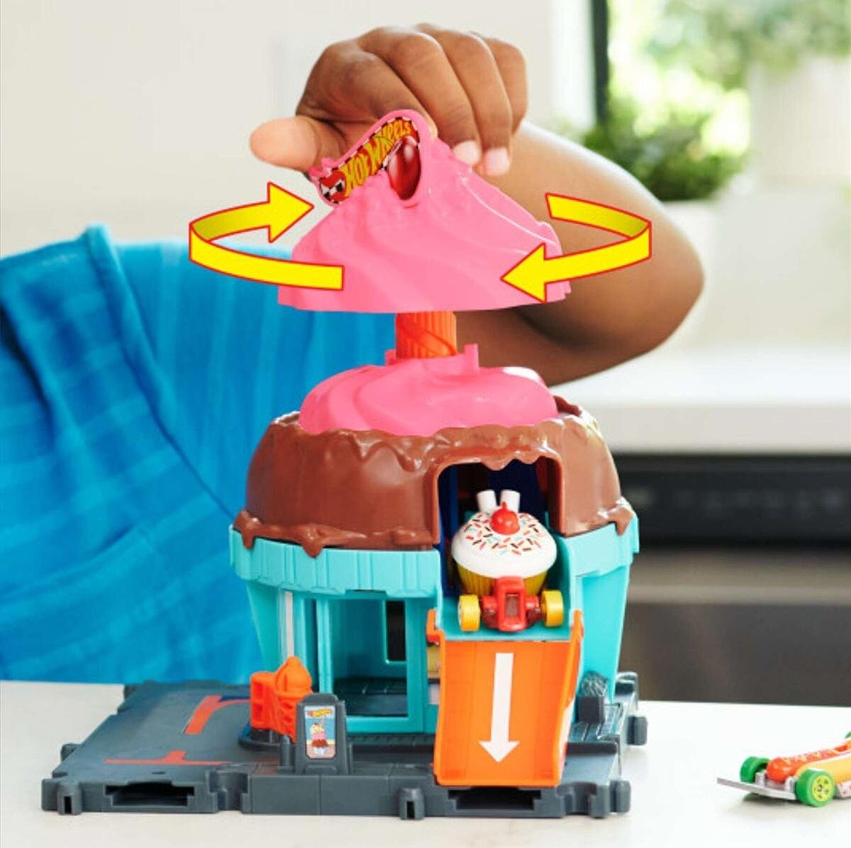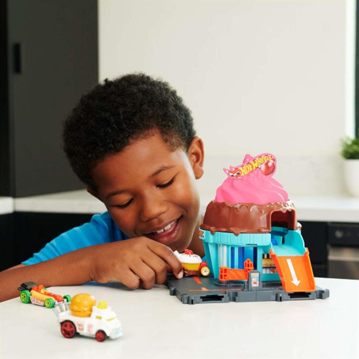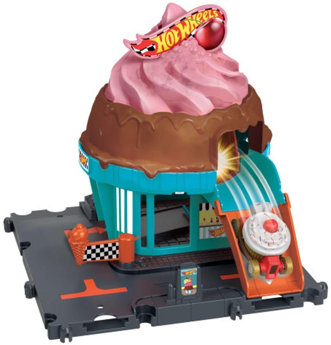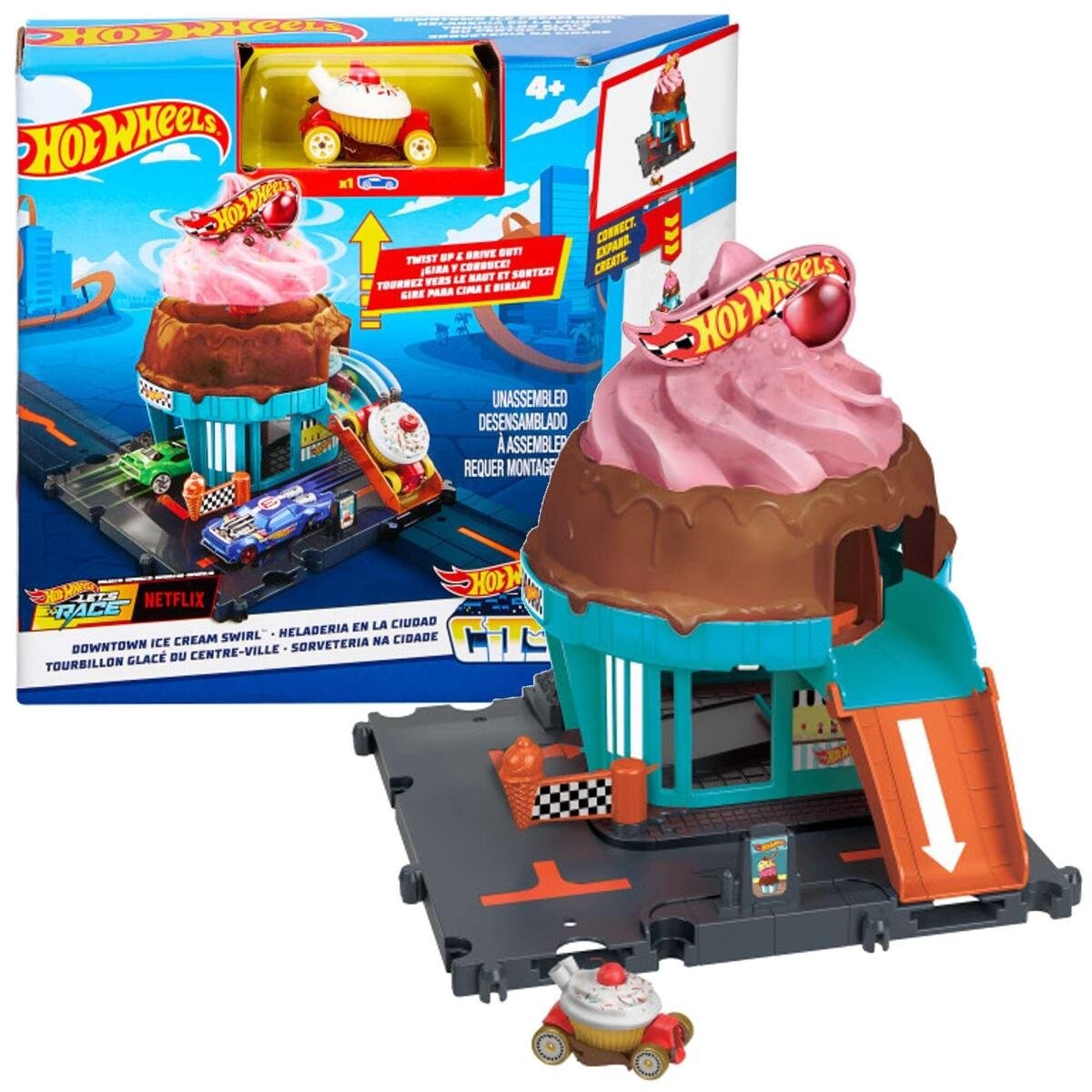 Эта игрушка — отличный набор, который побудит вашего ребенка создать собственный город, состоящий из трасс для машинок в форме мороженого и горячих колесиков в масштабе 1:64.