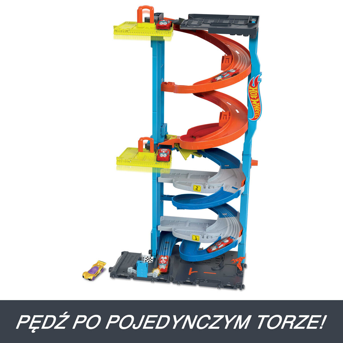 Почувствуйте вкус раллийного приключения 2-в-1 с набором трансформации Hot Wheels City Racing Tower.
