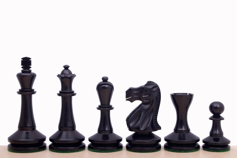 Эбонизированные шахматные фигуры Blackmore высотой 3,75 дюйма — изысканный образец элегантности и тонкого шахматного мастерства.