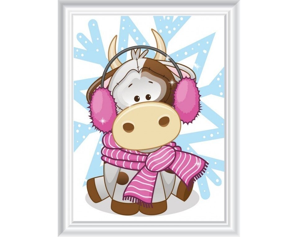 Алмазная мозаика 12х17 Корова зимой Collection D`Art
