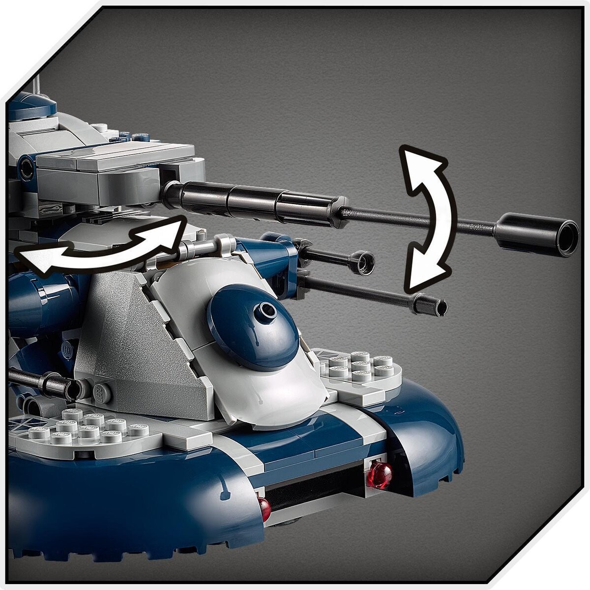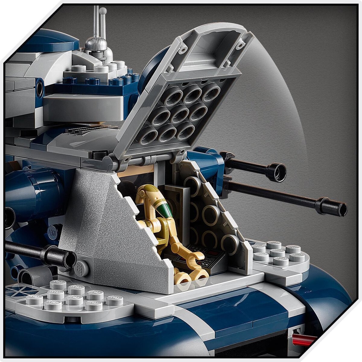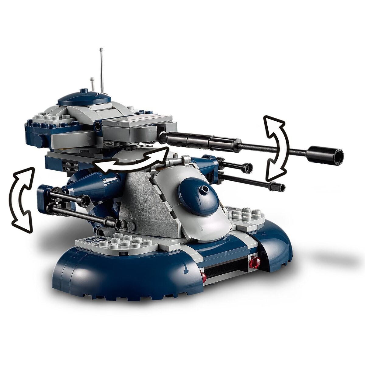 - Построенная модель AAT составляет ок. Высота 12 см, длина 21 см и ширина 14 см. Этим же транспортным средством можно управлять в видеоигре LEGO Star Wars: The Skywalker Saga, а это еще больше удовольствия!