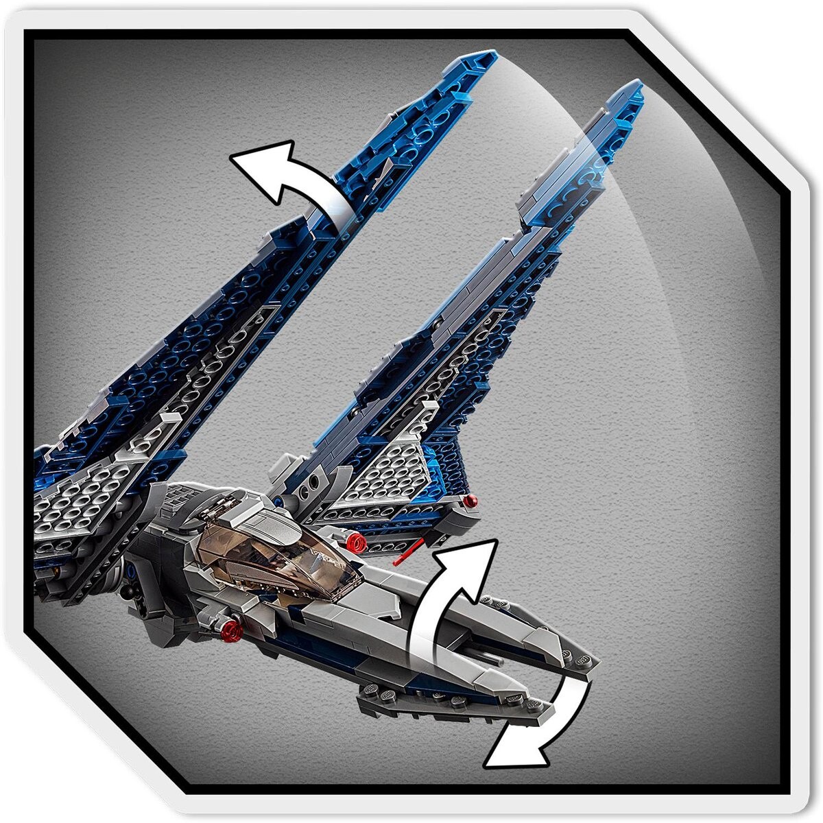 Дети смогут пережить памятные моменты из фильма «Звездные войны: Войны клонов» с помощью этого детализированного сборного мандалорского истребителя LEGO из набора 75316. Корабль оснащен открывающейся кабиной для двух минифигурок LEGO, двумя шипометами, двумя подпружиненными шутерами и регулируемыми крыльями. Поднимите их вертикально, чтобы подготовиться к посадке, или опустите и поверните кабину, чтобы придать кораблю аэродинамическую форму перед полетом.