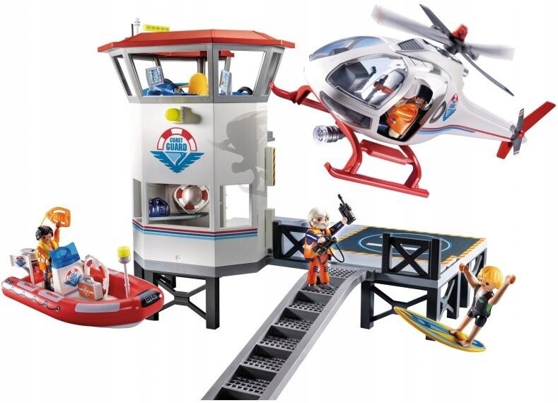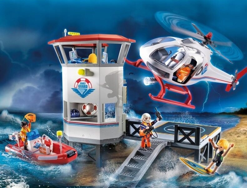 Мега-набор Coastal Protection 70664. Присоединяйтесь к береговой охране из серии Playmobil Rescue Action и обеспечьте безопасность на пляже. В комплект входит спасательная вышка с лестницей и смотровая площадка с посадочной площадкой для вертолета. Серфер оказался в опасности, когда его удивила погода и сильные волны. К счастью, береговая охрана дежурит и отправляет на помощь вертолет и спасательную лодку. Отправляйтесь в бой и помогите серферу благополучно приземлиться. В набор входят три фигурки спасателя и фигурка серфера.
