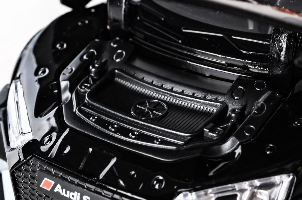 Audi R8 LMS 2015 №1 — черный, масштаб 1:32. Автомобиль со световыми элементами, характерным звуком раллийного автомобиля и тяговым ходом достоверно воспроизводит свойства раллийных автомобилей, а дополнительно открывающиеся двери и крышка двигателя позволяют рассмотреть детали салона автомобиля. В коллекции моделей RMZ HOBBY представлены раллийные автомобили, участвующие в трековых гонках различных федераций со всего мира. В коллекцию вошли автомобили с логотипами известных модных брендов, таких как AAPE, BATHING APE и EVISU, которые спонсируют раллийные команды. Металлический автомобиль с пластиковыми элементами, изготовленный с особой тщательностью из высококачественных материалов, оправдает ожидания коллекционеров и детей. во время игры. Изделие соответствует европейскому стандарту безопасности игрушек. Возрастной ценз: 3+. Все автомобили имеют официальную лицензию производителя.