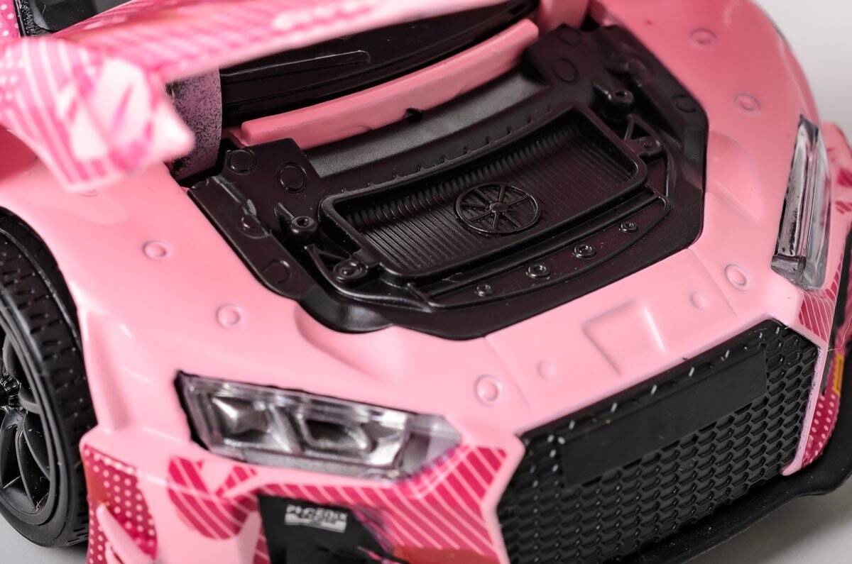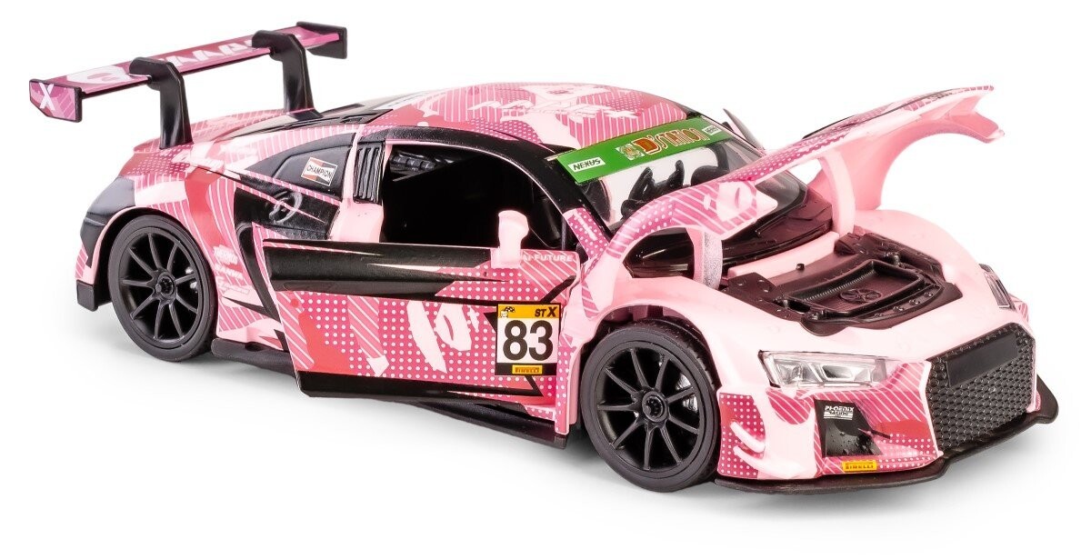 Audi R8 LMS 2015 № 83 (AAPE Pink), модель в масштабе 1:32. Автомобиль со световыми элементами, характерным звуком раллийного автомобиля и тяговым приводом достоверно воспроизводит свойства раллийных автомобилей, а дополнительно открывающиеся двери и крышка двигателя позволяют рассмотреть детали салона автомобиля. В коллекции моделей RMZ HOBBY представлены раллийные автомобили, участвующие в трековых гонках различных федераций со всего мира. В коллекцию вошли автомобили с логотипами известных модных брендов, таких как AAPE, BATHING APE и EVISU, которые спонсируют раллийные команды. Металлический автомобиль с пластиковыми элементами, изготовленный с особой тщательностью из высококачественных материалов, оправдает ожидания коллекционеров и детей. во время игры. Изделие соответствует европейскому стандарту безопасности игрушек. Возрастной ценз: 3+. Все автомобили имеют официальную лицензию производителя.
