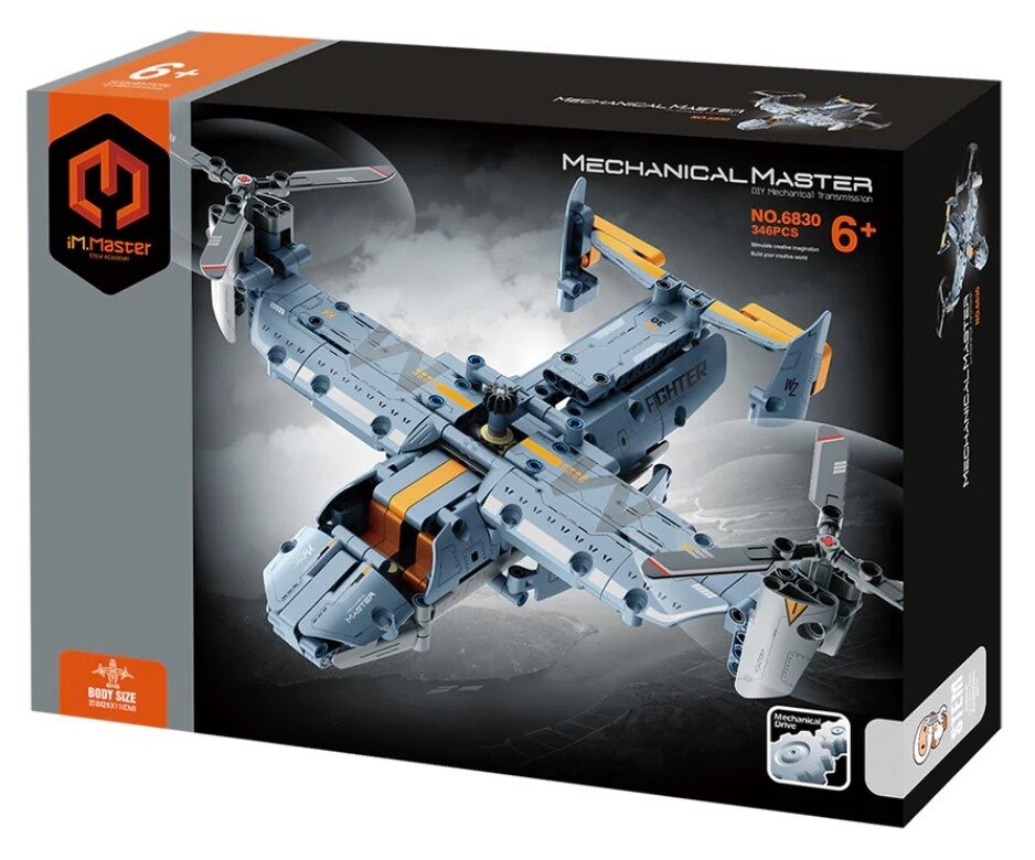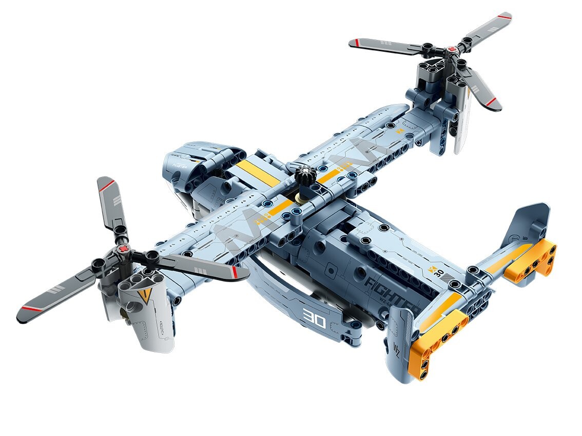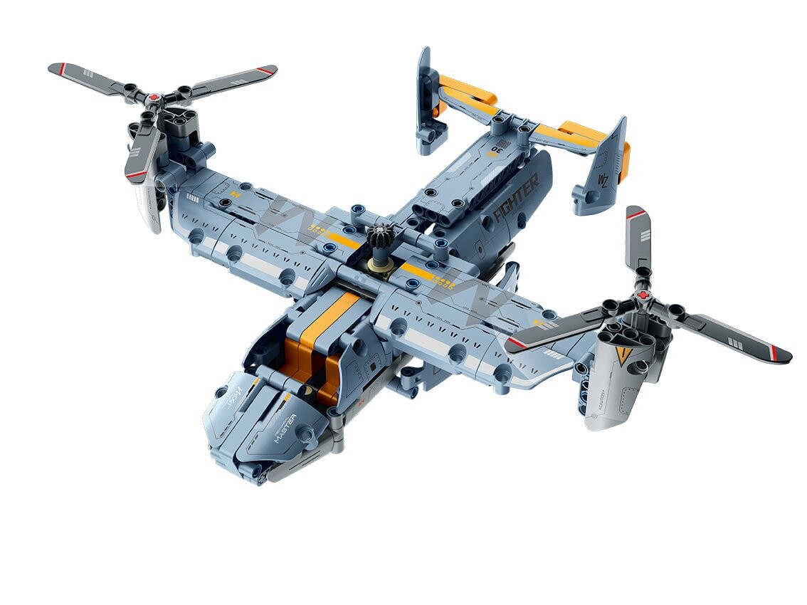 На кубиках изображен транспортный самолет Osprey — чудо инженерной мысли, которое поднимите свое воображение на новую высоту! Набор состоит из 346 элементов.
