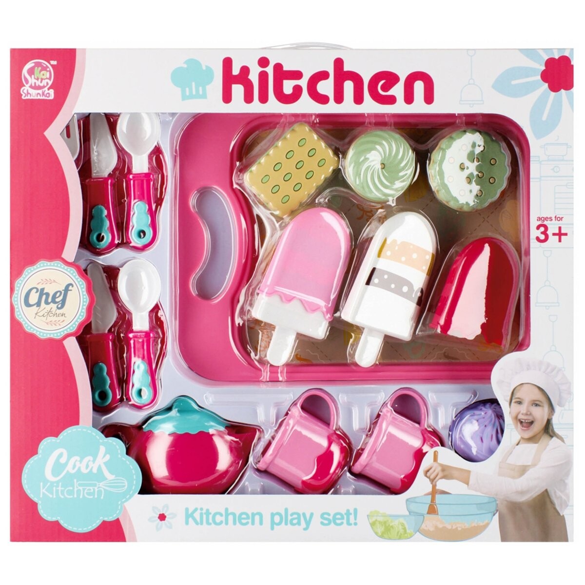 С помощью этого набора дети смогут пощупать себя настоящими поварами и хозяевами, приглашая друзей отведать вкусные десерты.