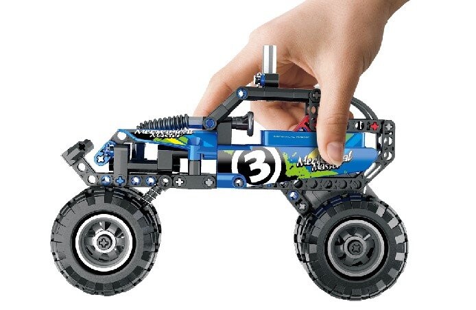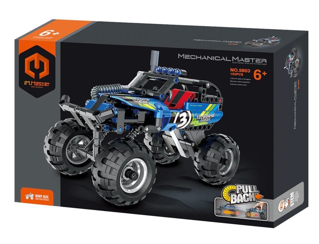В блоках изображен захватывающий грузовик iM.Master Pull Back Truck в красочном исполнении. синий! Набор состоит из 193 элементов.