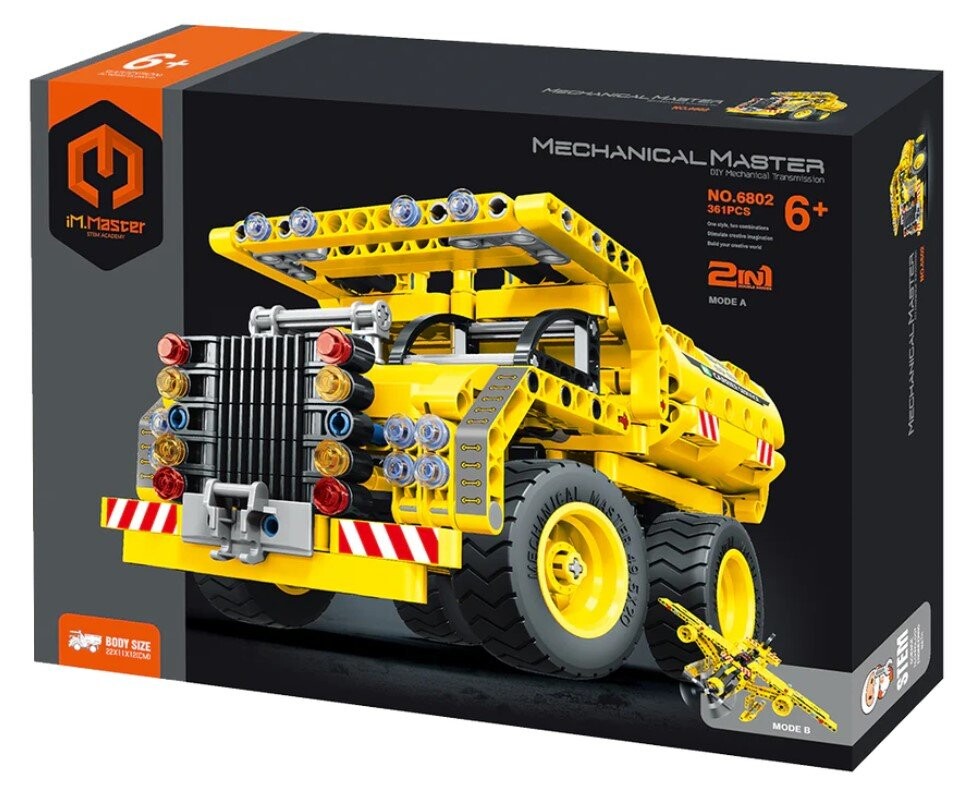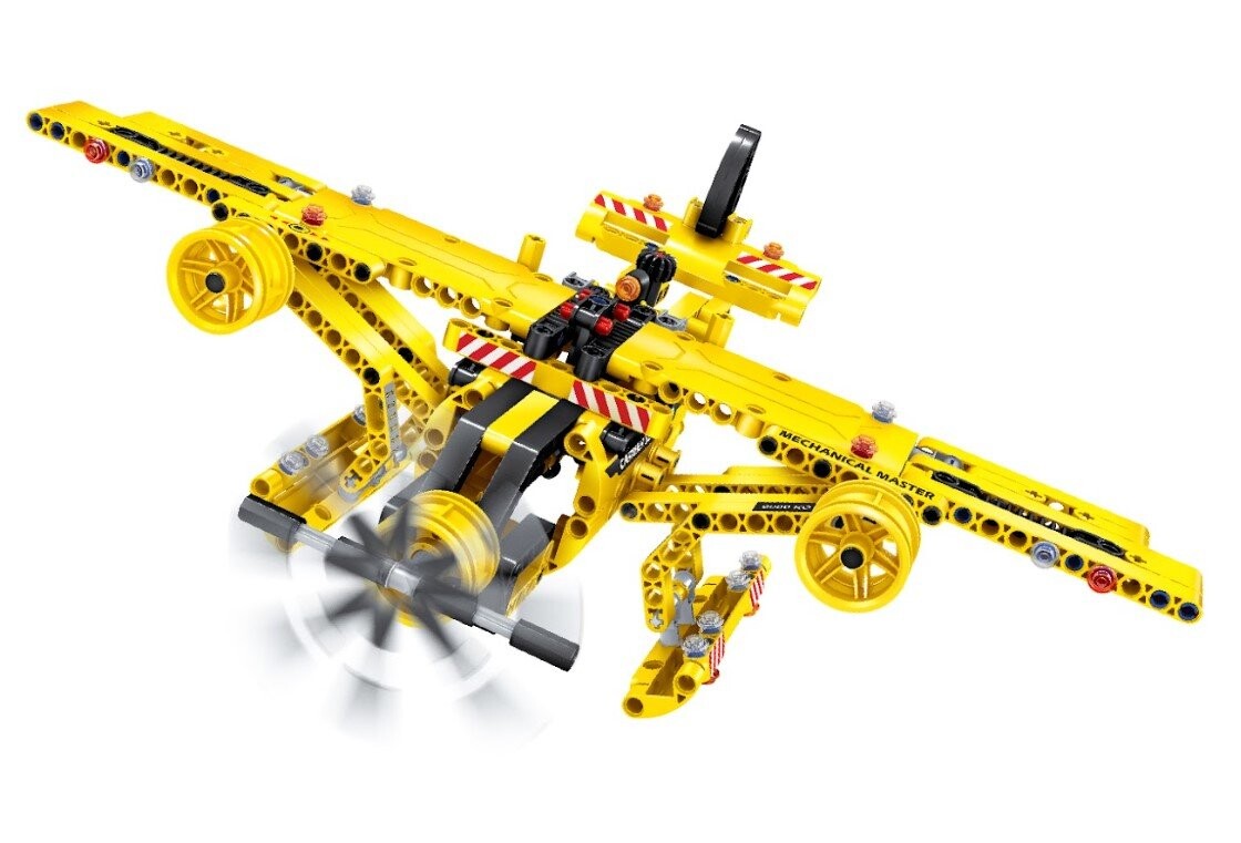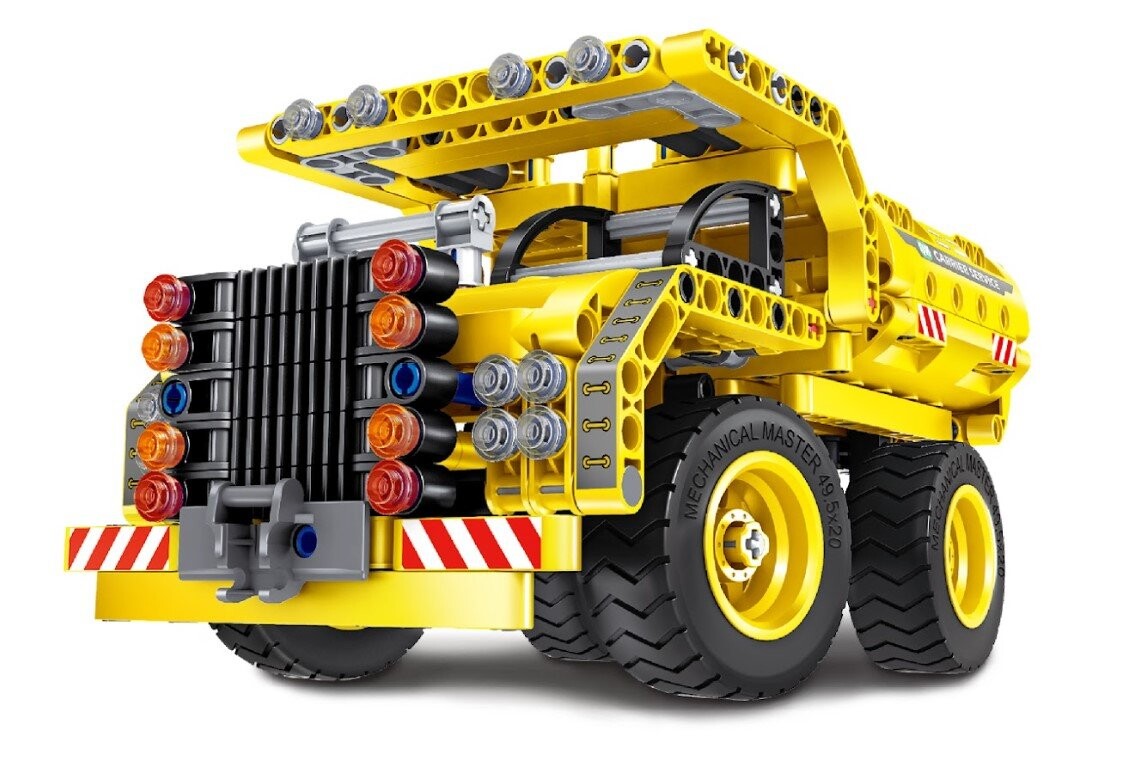 Блоки представляют собой гениальную комбинацию инженерного самосвала и самолет! Приготовьтесь удивиться двум супер крутым формам — решите, какую из них вы построите. Модель самосвала в точности имитирует настоящую строительную машину, а планер содержит вращающийся пропеллер!