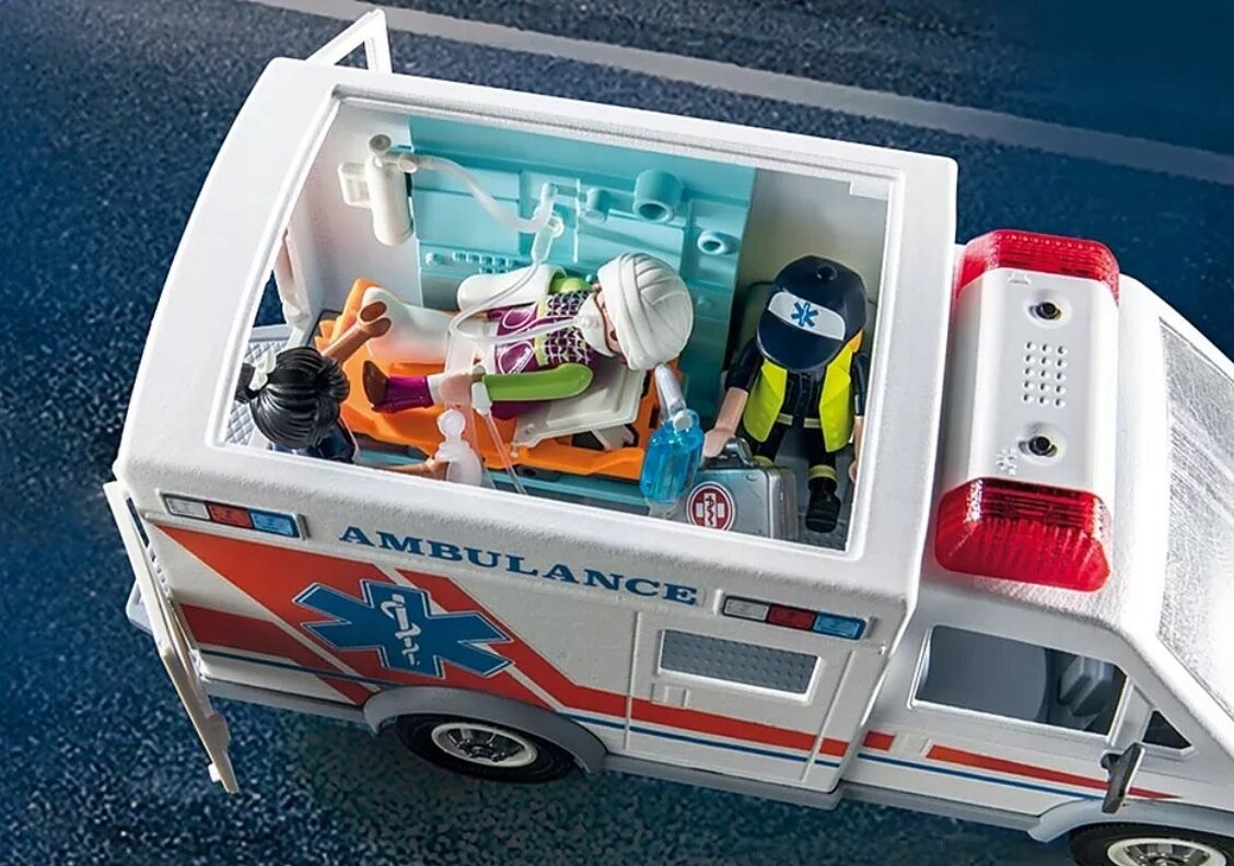 Хватай стетоскоп и отправляйся на помощь с универсальным машина скорой помощи, машина скорой помощи PLAYMOBIL. В этом удивительном наборе есть машина скорой помощи со звуком сирены и открывающимися задними дверцами, в которых можно разместить носилки. Легкий доступ внутрь машины скорой помощи благодаря съемной крыше. В автомобиле имеются различные отсеки для хранения всего необходимого медицинского оборудования.