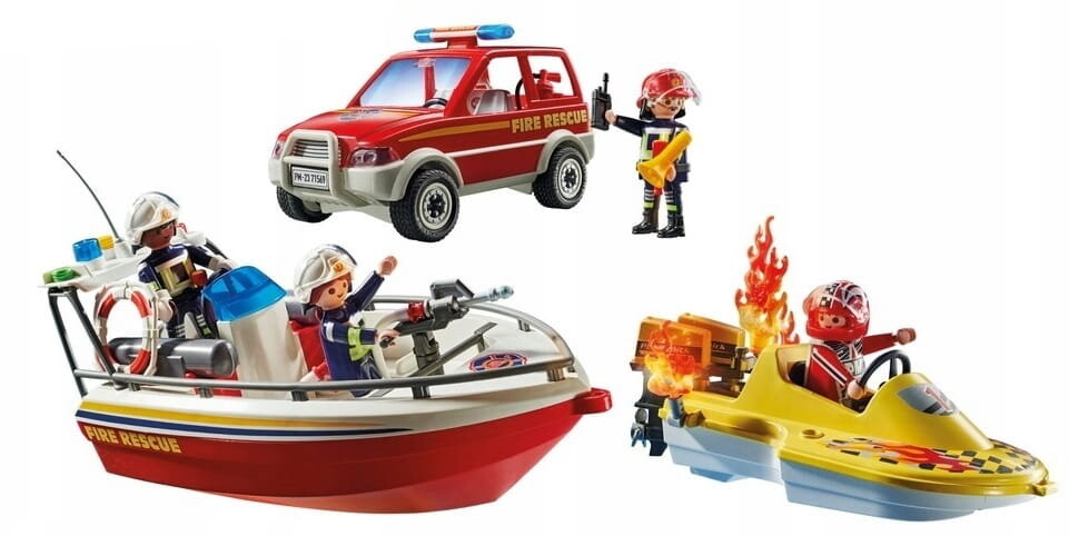 Содержимое : 1 пожарная машина, 1 катер. 1 пожарный катер и 3 фигурки.