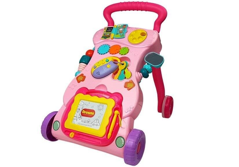 Толкач — идеальное решение для детей, которые ползают или делают первые шаги самостоятельно: это будет интересный способ побудить вашего ребенка научиться гулять, доставляя им массу удовольствия. Игрушка положительно влияет на развитие моторики ребенка, а также улучшает зрение и слух. Ваш малыш может играть с вращающимися погремушками и ключами.