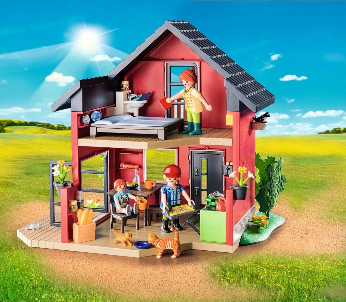 Фермерские наборы PLAYMOBIL предлагают бесконечные игровые возможности с детализированными зданиями, реалистичными транспортными средствами и любящими персонажами. которые увлекательно отражают повседневную жизнь на ферме. Дом с красиво обставленной гостиной и спальной зоной.