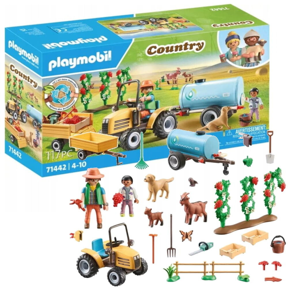 В набор PLAYMOBIL Country входят две фигурки PLAYMOBIL, собака, две козы, трактор с прицепом, резервуар для воды и множество других аксессуаров, которые сделают рассказ собственных историй еще более реалистичным.