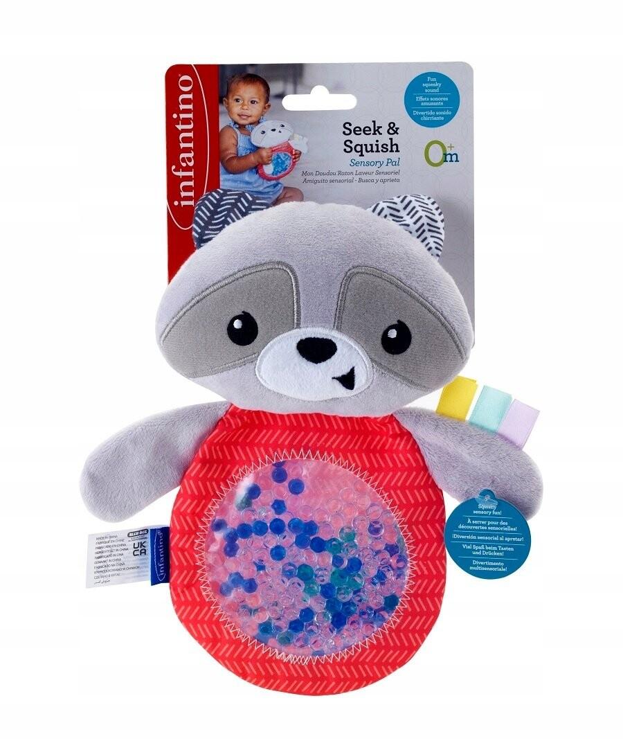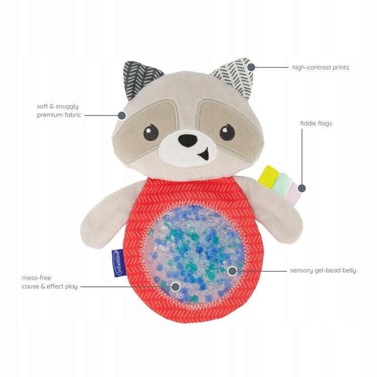 Сенсорный талисман Енот с гелевыми шариками, мягкий талисман в форме енота может быть как любимой мягкой игрушкой, так и сенсорной игрушкой, стимулирующей чувства ребенка. . Контрастные цвета, узоры и фактуры тканей, шуршащие звуки и шарики геля в животе животного будут стимулировать осязание и слух ребенка. Идеальная мягкая игрушка для игр.