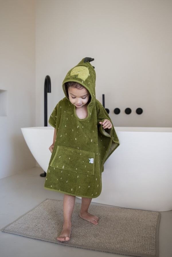 Очаровательное и практичное пончо с капюшоном из невероятно мягкой махровой ткани. После ванны или приятного душа веселое животное готово укутать и высушить вашего малыша. Удобное и легко надеваемое пончо позволяет с легкостью вытаскивать малышей из воды. Поскольку пончо плотно соприкасается с нежной кожей ребенка, оно изготовлено из 100% органического хлопка. Веселье с веселым животным продолжается и в ванной комнате.