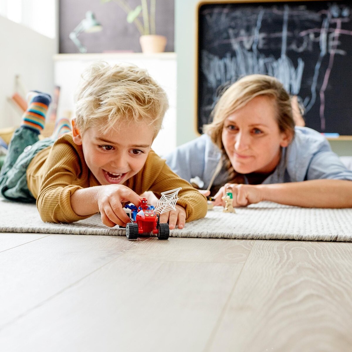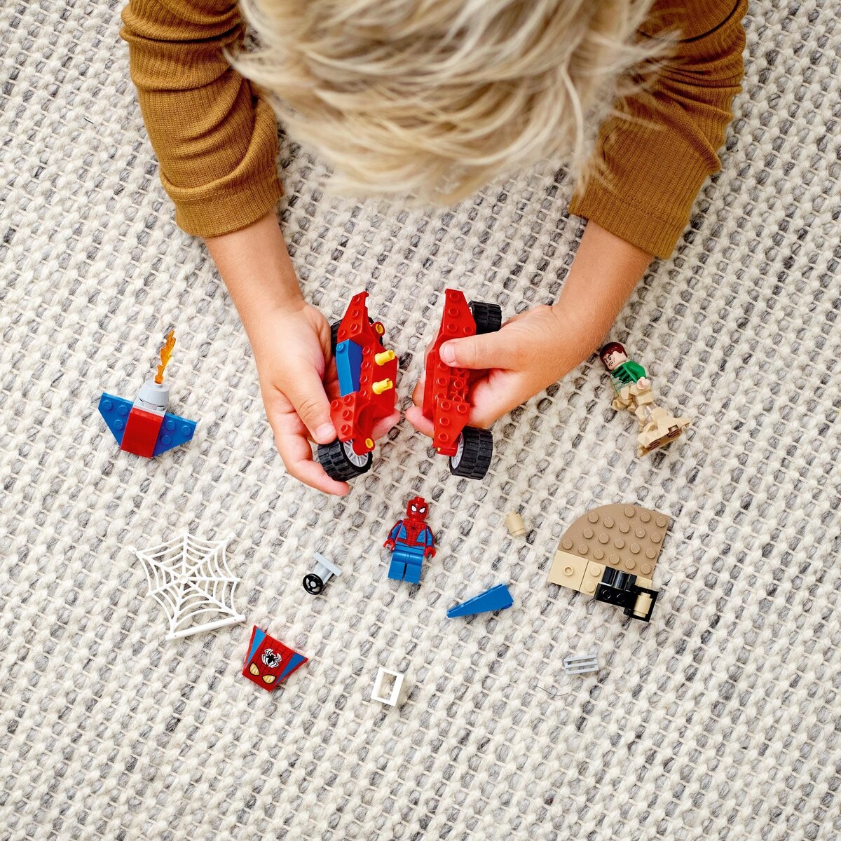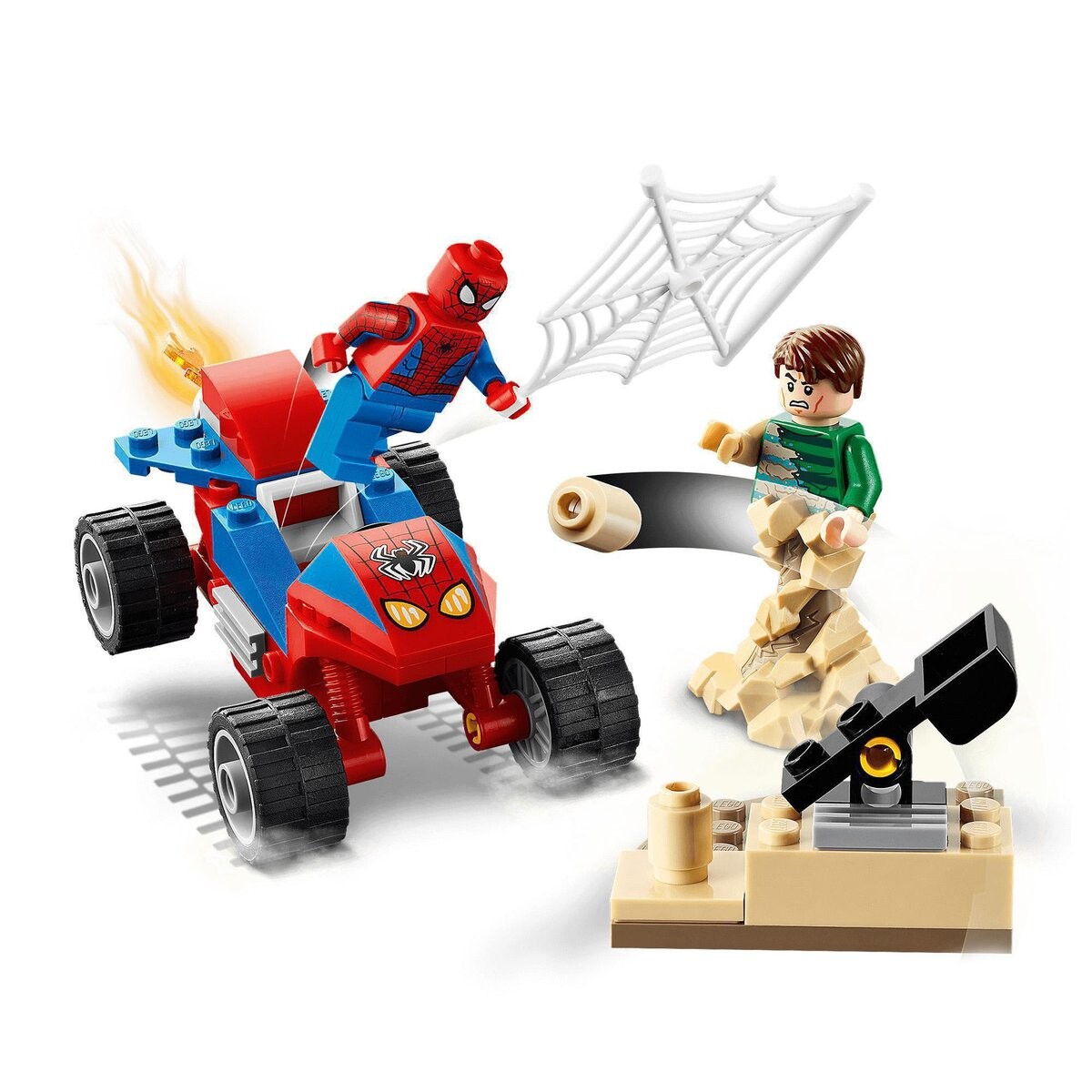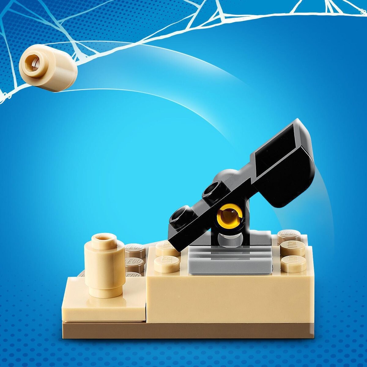 Суперзлодей Песочный Человек вызвал песчаный торнадо, поэтому Человеку-Пауку приходится идти в бой. Позвольте вашему маленькому супергерою присоединиться к битве и отправляйтесь в бой на багги вместе с Человеком-пауком. Только будьте осторожны, ведь Песочный человек контратакует песчаной катапультой! Хватит ли быстрой машины Человека-паука и его навыков метания паутины, чтобы контролировать ситуацию? Набор способствует развитию детей, а благодаря бесчисленным историям им не будет скучно.