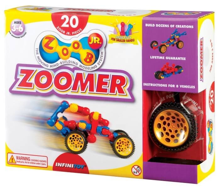 Zoob — это блоки с совершенно инновационным способом соединения. Пять типов блоков соединяются между собой двадцатью разными способами. Вы можете использовать их для создания транспортных средств, динозавров, животных, зданий, колец, кораллов, корон, людей и т. д.