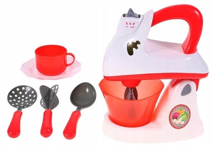 Игрушка издает настоящие звуки, делая ее похожей на домашнюю оборудование. Миксер оснащен вращающимися мешалками и подсветкой, сигнализирующей о работе оборудования. Рычаг миксера перемещается вверх и вниз. Облегчает снятие и установку чаши.