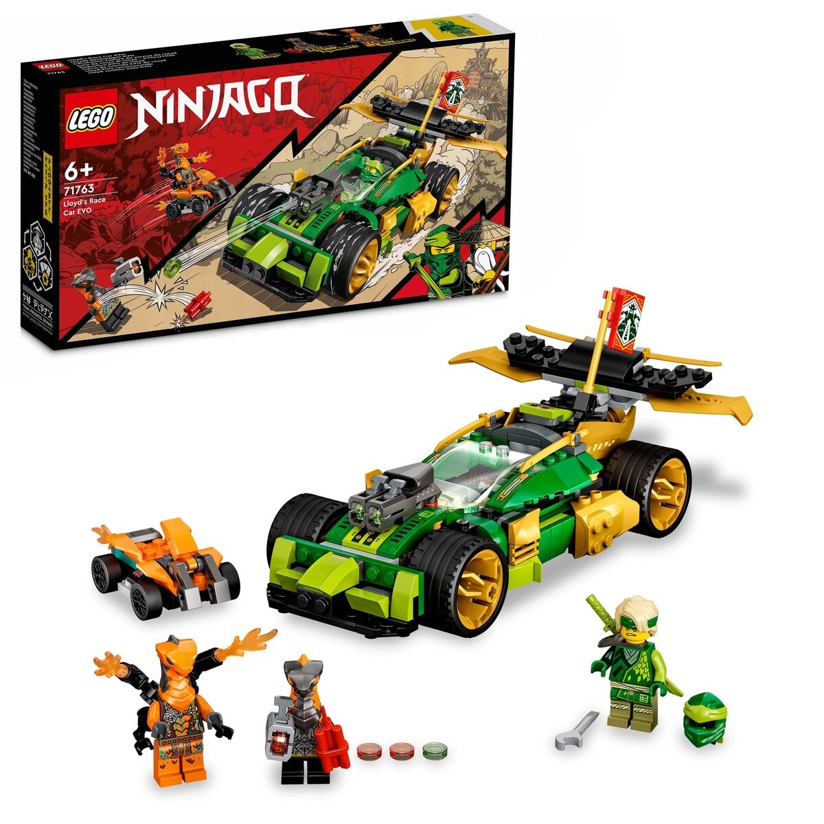 Чтобы победить змей Дети смогут собрать три версии гоночной машины Ллойда с более мощным двигателем и более прочной броней.Гоночный автомобиль LEGO NINJAGO Lloyd's EVOНачните миссию