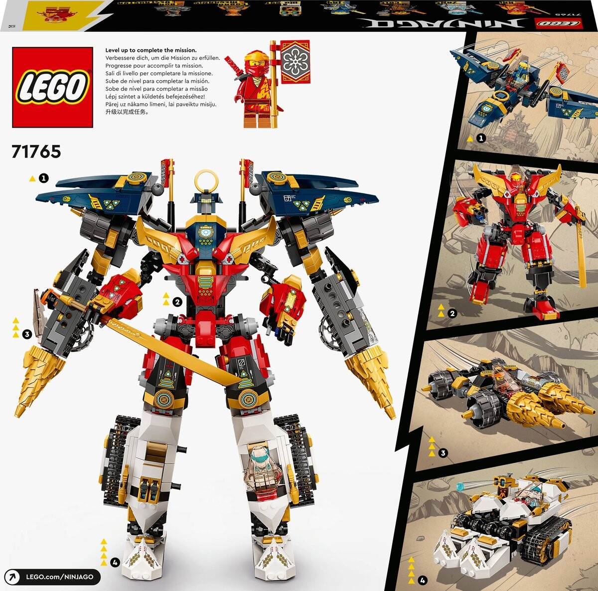 В набор входит большой робот, состоящий из танка, реактивного самолета, автомобиля и маленького робота, а также семь минифигурок.Многофункциональный ультра-механик ниндзя LEGO NINJAGOНабор роботов ниндзя 4-в-1