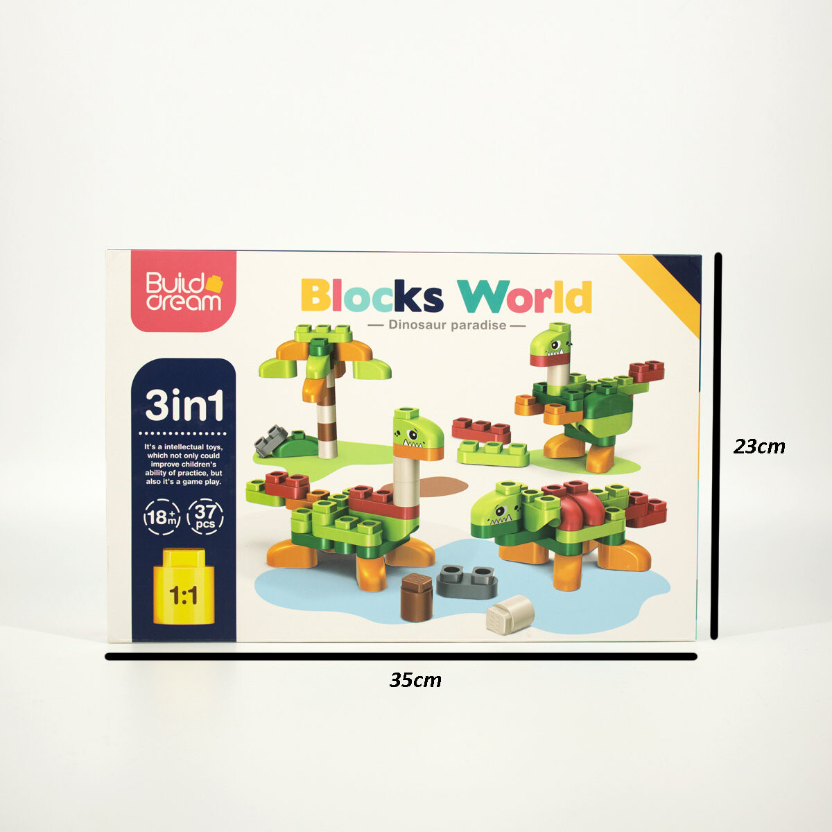 ДИНОЗАВРЫ ИЗ БЛОКОВ ДЛЯ МАЛЫША 3 В 1, 37 ШТ.