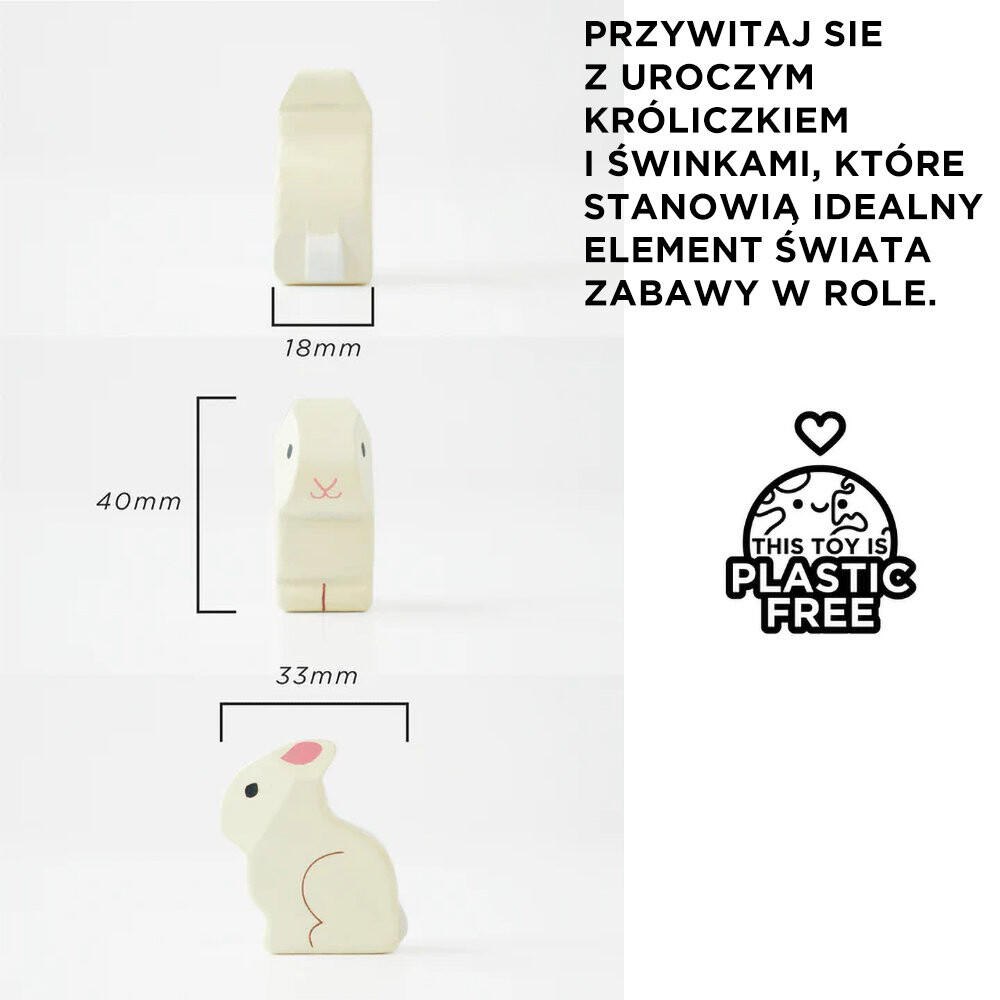 Добавьте животных в кукольный домик вашего малыша с помощью этого очаровательного набора «Зайчик и морская свинка». Эта игрушка без пластика изготовлена из натурального дерева, сертифицированного FSC, окрашена в безопасные для детей цвета и состоит из 5 игровых элементов - кролика, пары морских свинок, миски для кормления, клетки и места, где морковка может хрустеть. . Прекрасное дополнение к вашей коллекции игр в маленьком мире.