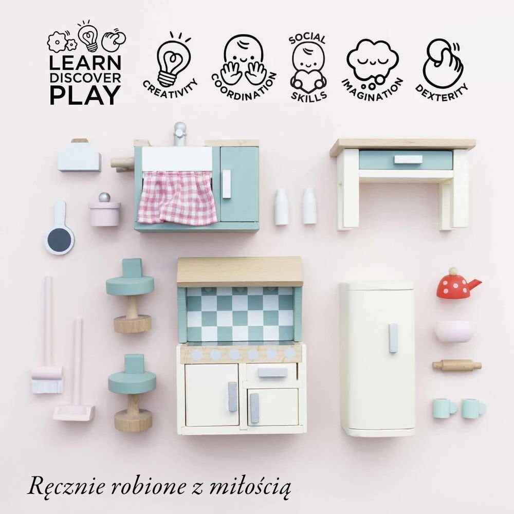 Этот потрясающий кухонный гарнитур для кукольного домика имеет очаровательный современный вид и мгновенно придаст стиль любому кукольному домику. Содержит 20 отдельных деталей, все изготовлены из сертифицированной FSC древесины и идеально адаптированы к широкому ассортименту потрясающих кукольных домиков Le Toy Van.
