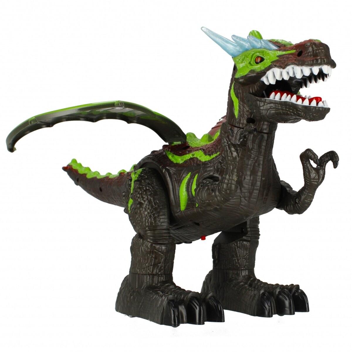 Голова и пасть динозавра светятся разными цветами, а издаваемые им ревущие звуки добавляют аутентичности любой игре.