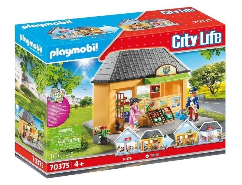 На этот раз у детей есть пакет, содержащий целых 100 кубиков, из которых они смогут построить фантастическое здание продуктового магазина с полным оснащением. . Фасад здания желтый, имеет серую крышу и символ тележки для покупок на фасаде. Здесь вы можете купить свежие овощи и фрукты, а также красивые цветы! Внутри супермаркета, конечно, есть прилавок с кассовым аппаратом и дополнительными полками для продуктов.