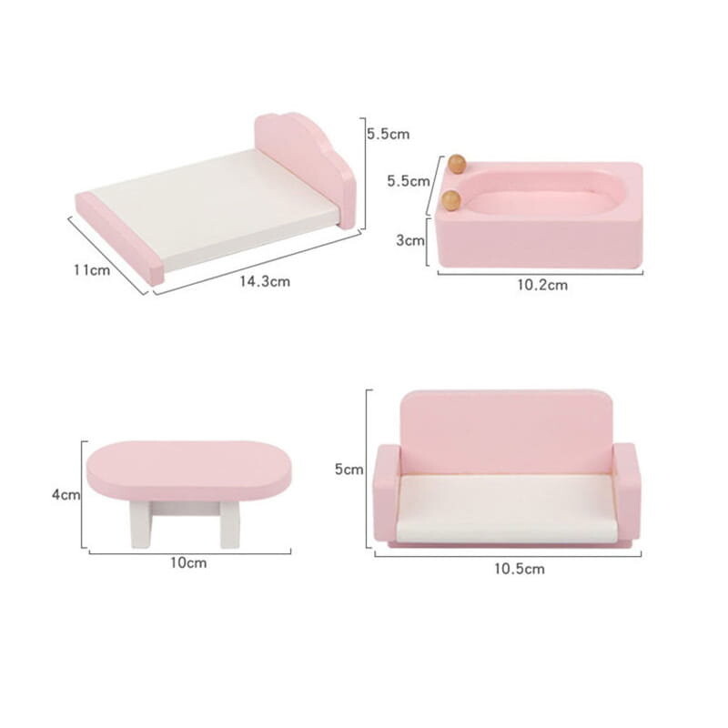 - деревянная мебель для кукольного домика - в комплект входят элементы для: гостиной, спальни, ванной комнаты, кухни