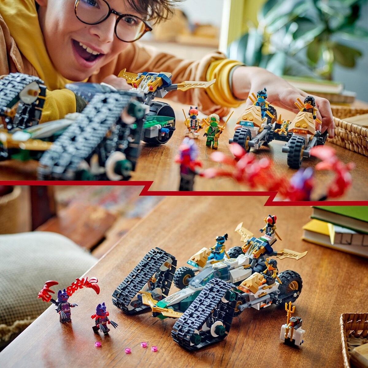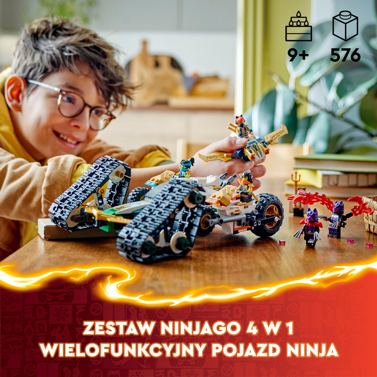 Машина LEGO NINJAGO 4-в-1 позволяет детям играть с одной большой машиной или четырьмя транспортными средствами меньшего размера.Интересная модель и крутые приключения в стиле ниндзя